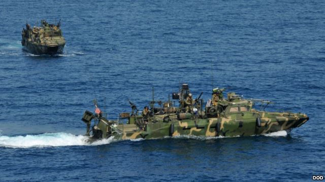US Navy riverine boats are seen in this 2012 Defense Department photo.